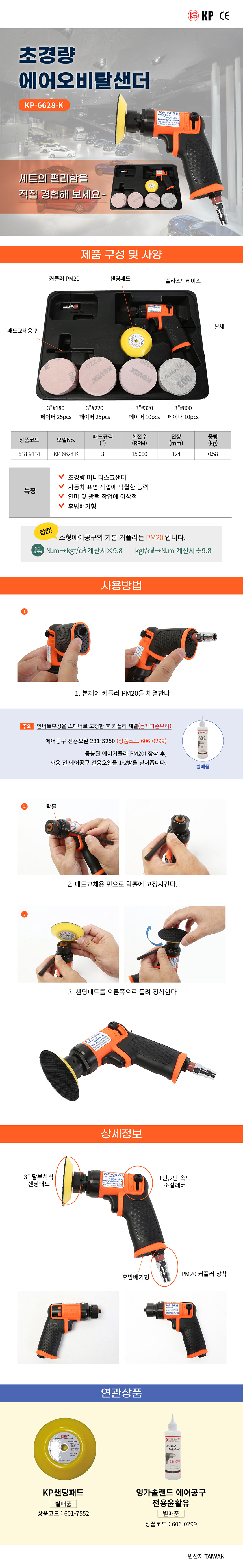 KP 에어오비탈샌더세트 KP-6628K(75mm) 에어공구, 에어샌더, 사포기 공구몰 618-9114