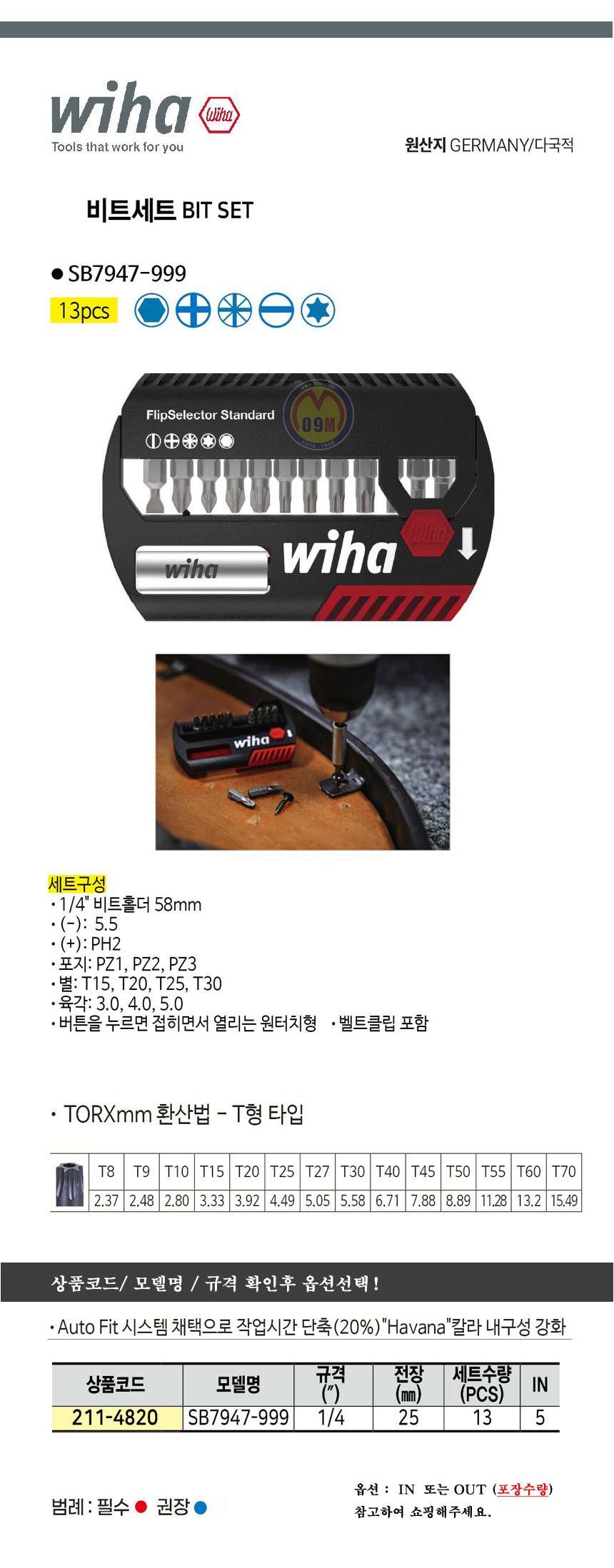 이하 비트세트 SB7947 999 1/4-13pcs WIHA, 빗트세트, 공구몰 210-8519