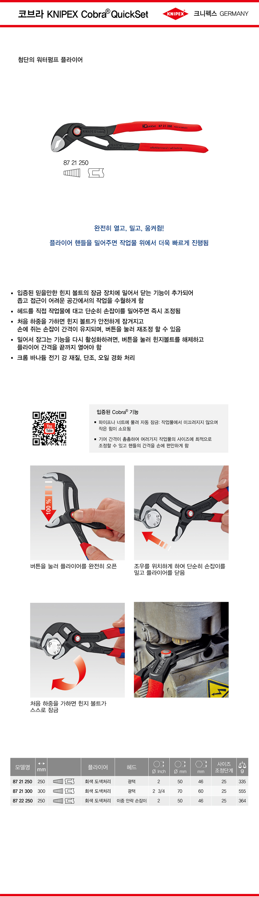 크니펙스 첼라(코브라) 87-21-250,87-21-250SB Knipex 워터펌프플라이어 공구몰 101001020327