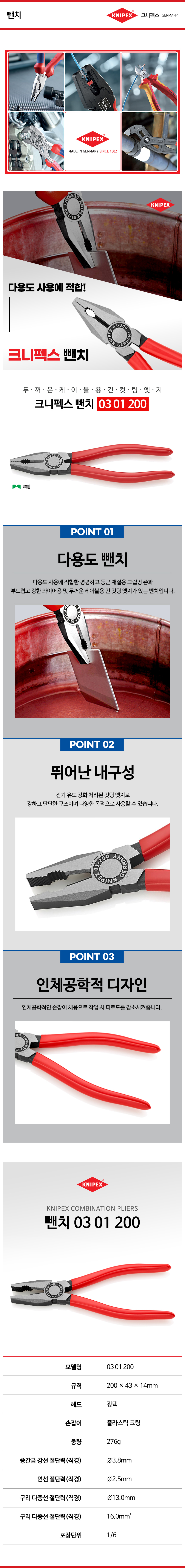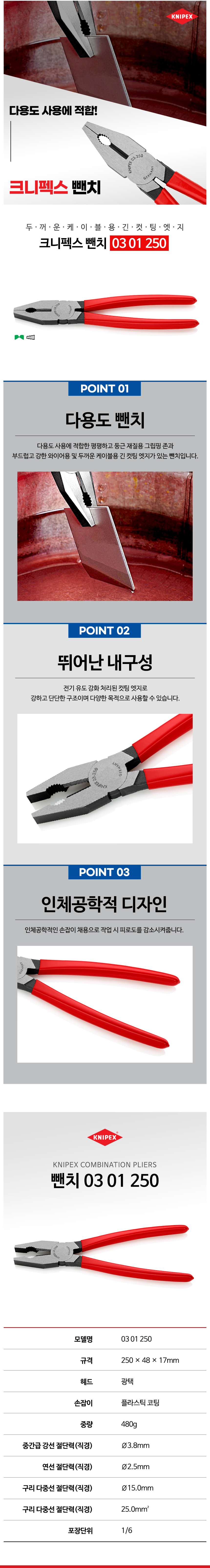 크니펙스 뺀치 03-01-200SB(8), 03-01-250(10) 전공뺀치, Knipex 독일공구, 독일수공구 공구몰추천 101001010037