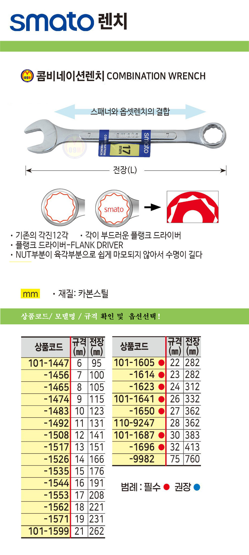 스마토 콤비네이션렌치 06mm-14mm SMATO 공구몰 함마렌치 101-1483