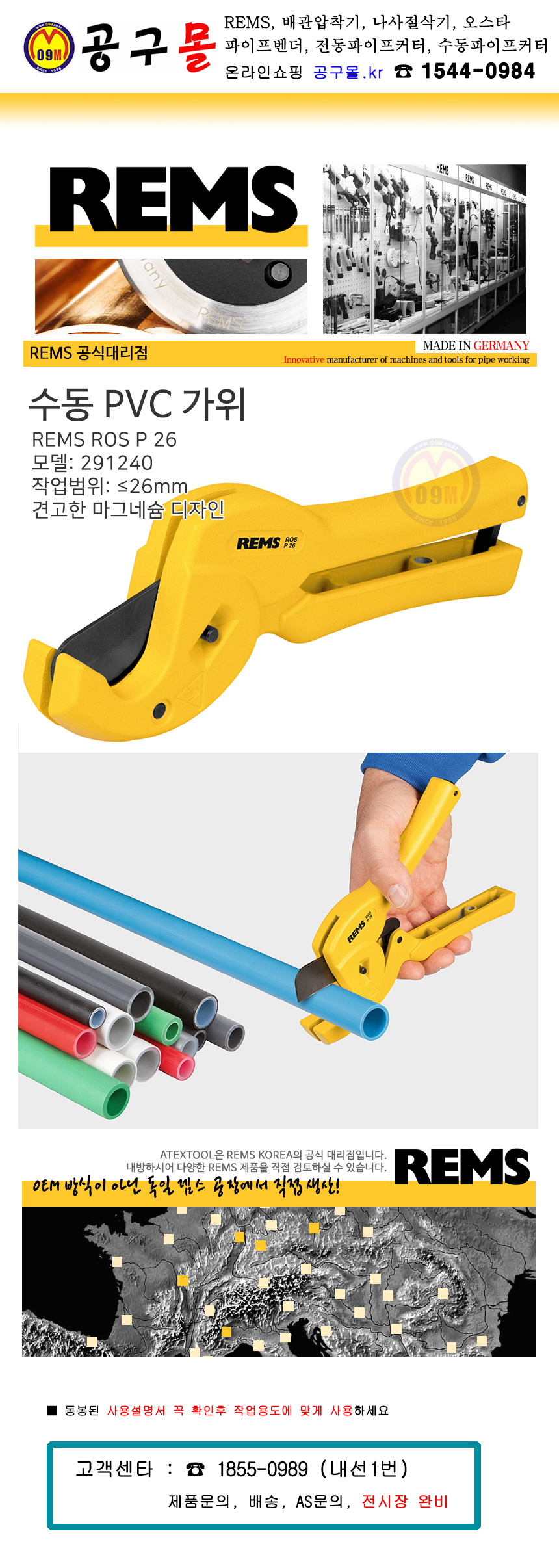 렘스 수동 PVC커터 라스P 10-63 290000 R, 10-63mm(7T) REMS, 공구몰, 독일제조, 액셀커터, 배관공구