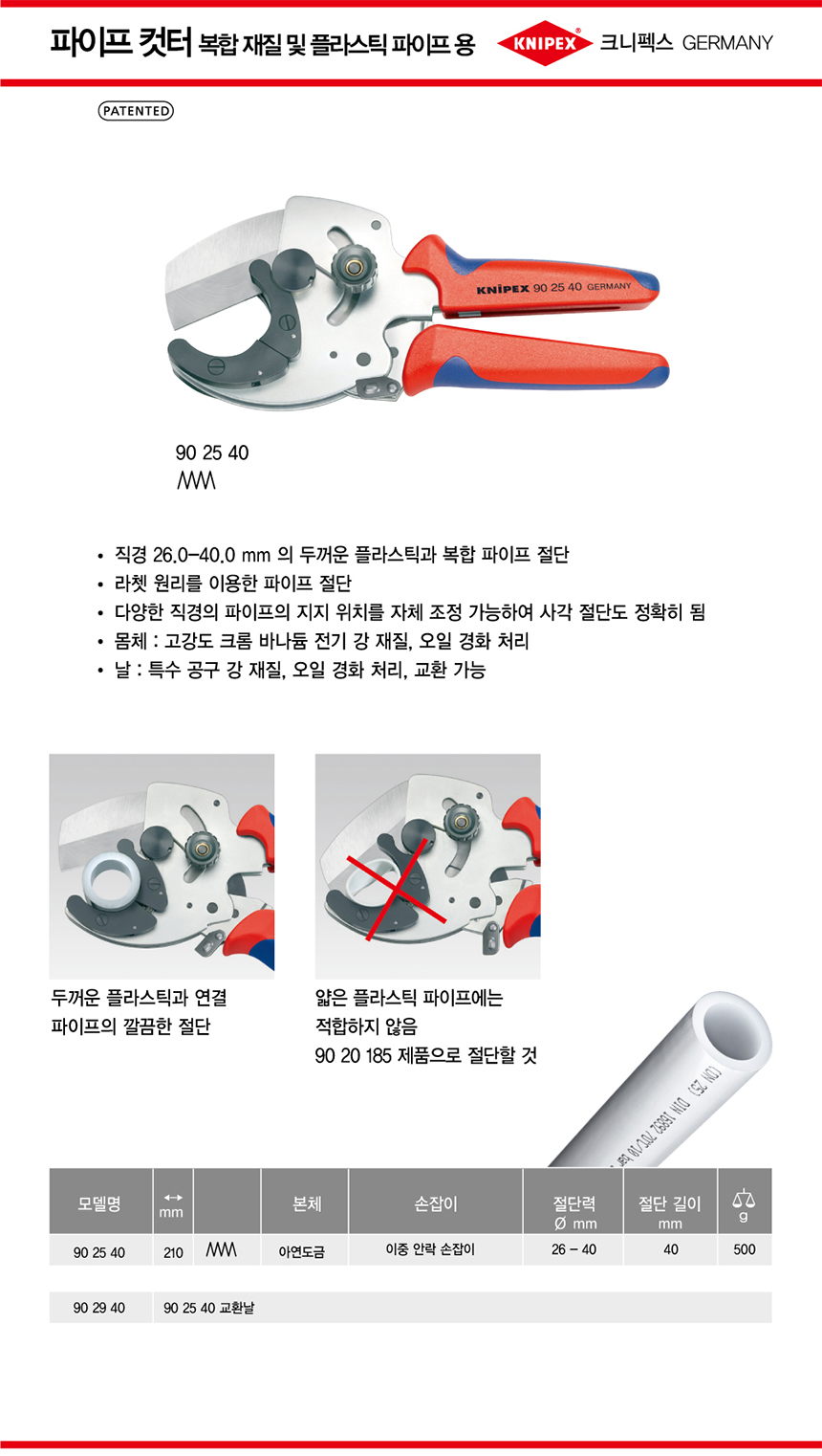 크니펙스 파이프컷터(복합) 90-25-40 다용도커터, Knipex 독일공구, 독일수공구 공구몰추천 101021530005