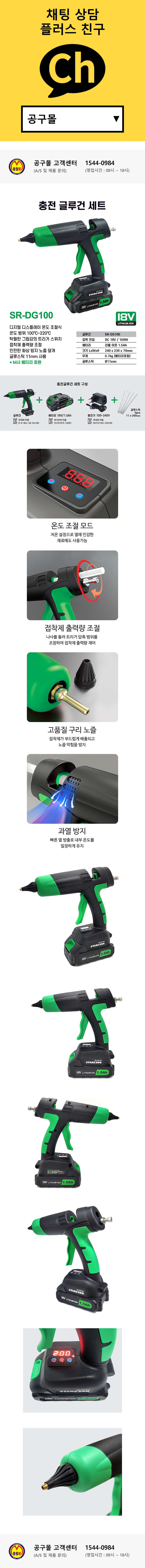스타렉슨 충전글루건 SR-DG100 (18V 베어툴) 충전핫멜건 마끼다타입