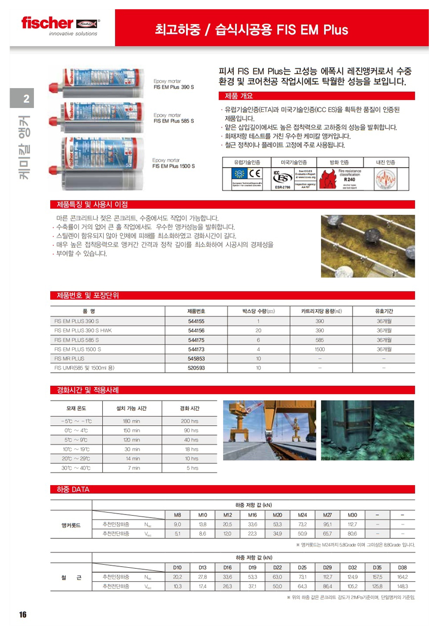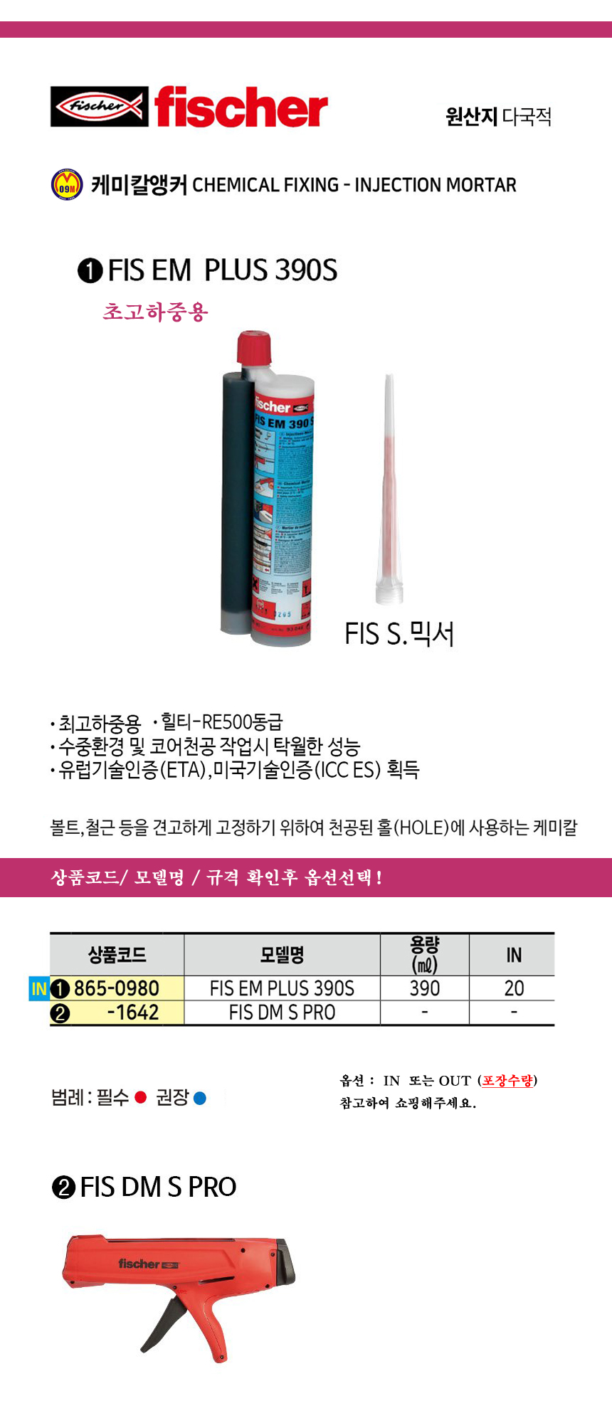 피셔 케미칼앵커 FIS EM PLUS 390S-2액형/ NO.544156(390ML,초고하중용) fischer, 공구몰 865-0980
