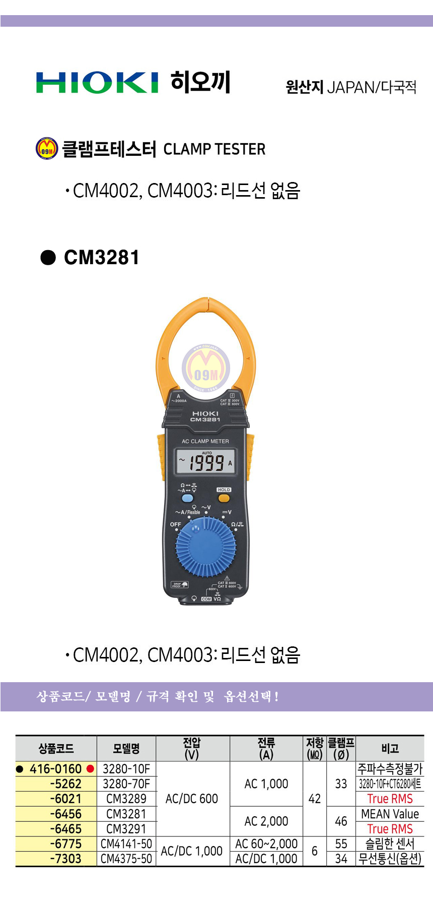 히오끼 클램프테스터(디지털) CM3291 HIOKI ,테스타기, 공구몰 416-6465