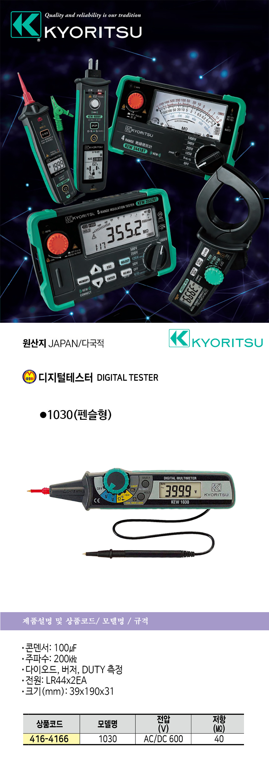 교리쯔 디지털테스터(펜슬) NO.1030 KYORITSU, 공구몰 416-4166