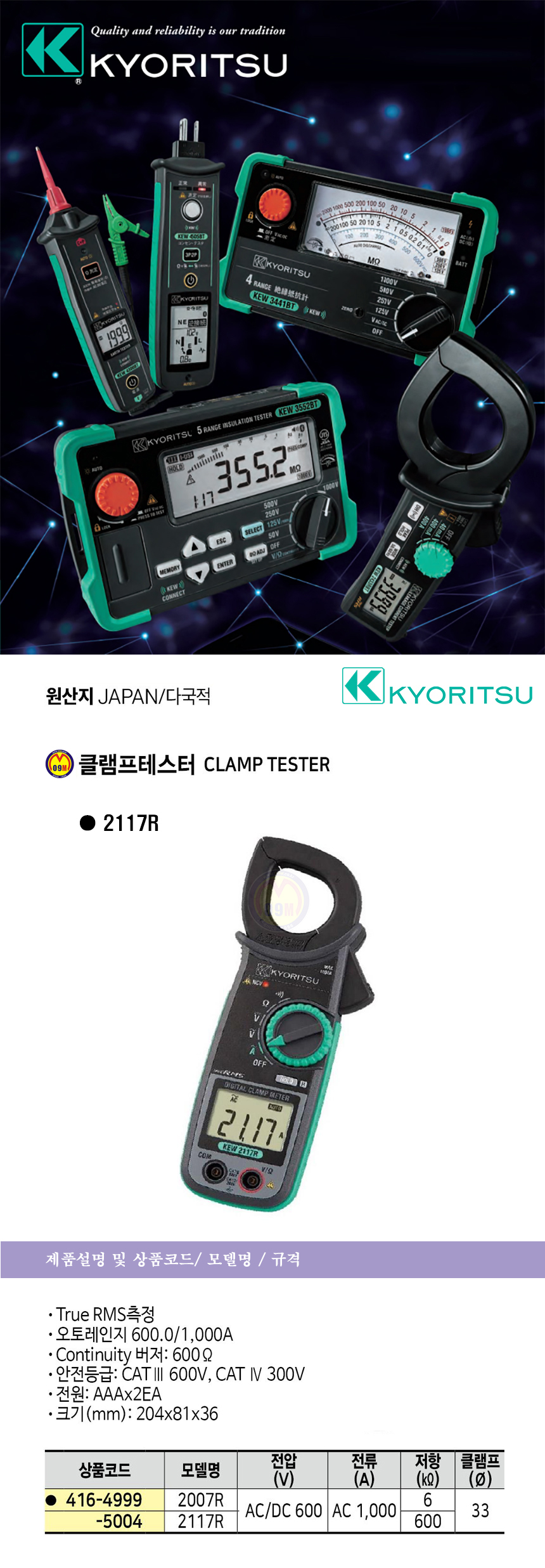 교리쯔 클램프테스터 NO.200 KYORITSU, 공구몰 416-0744