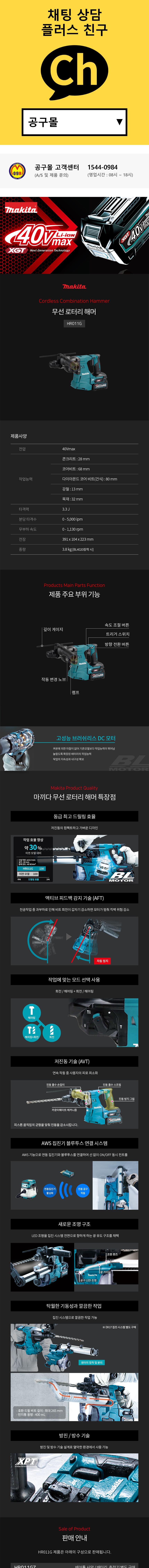 마끼다 로터리해머드릴 HR011G (40V-배어툴) SDS-PLUS 콘크리트드릴