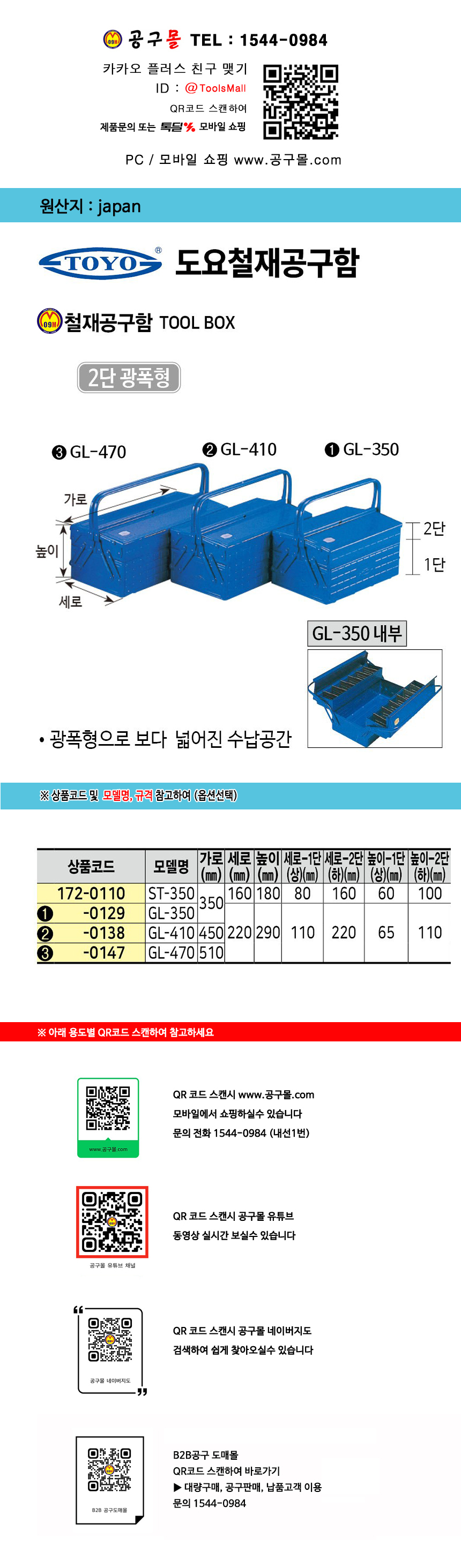 도요 철재공구함(2단광폭) GL-350,GL-410(2단),GL-470(2단) TOYO 일본산 공구함 172-0129
