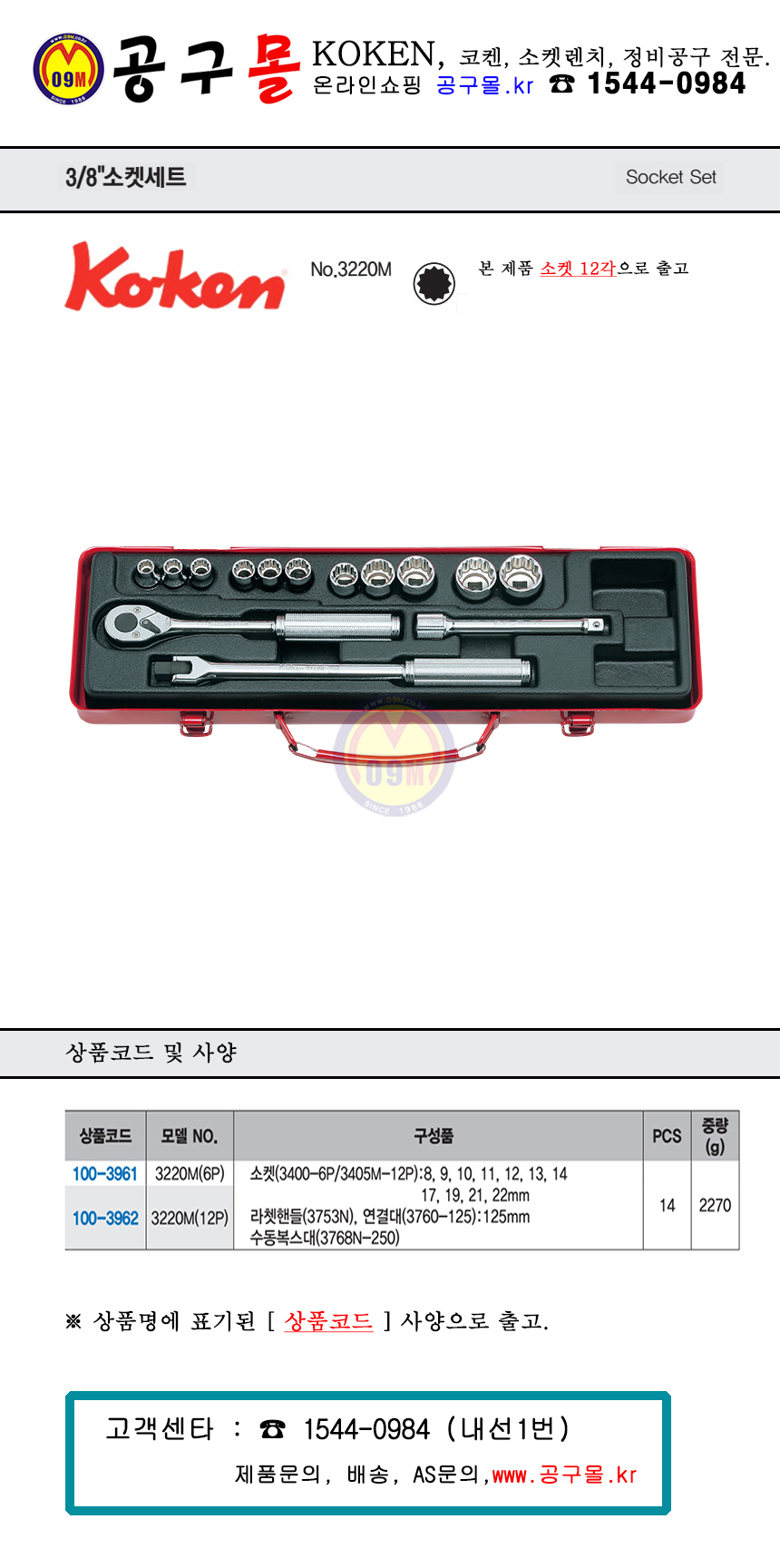 품절,코켄, 소켓세트(3/8-12각) 3220M-12P (14PCS) 3405M, KOKEN, 복스세트, 소켓세트,100-3962
