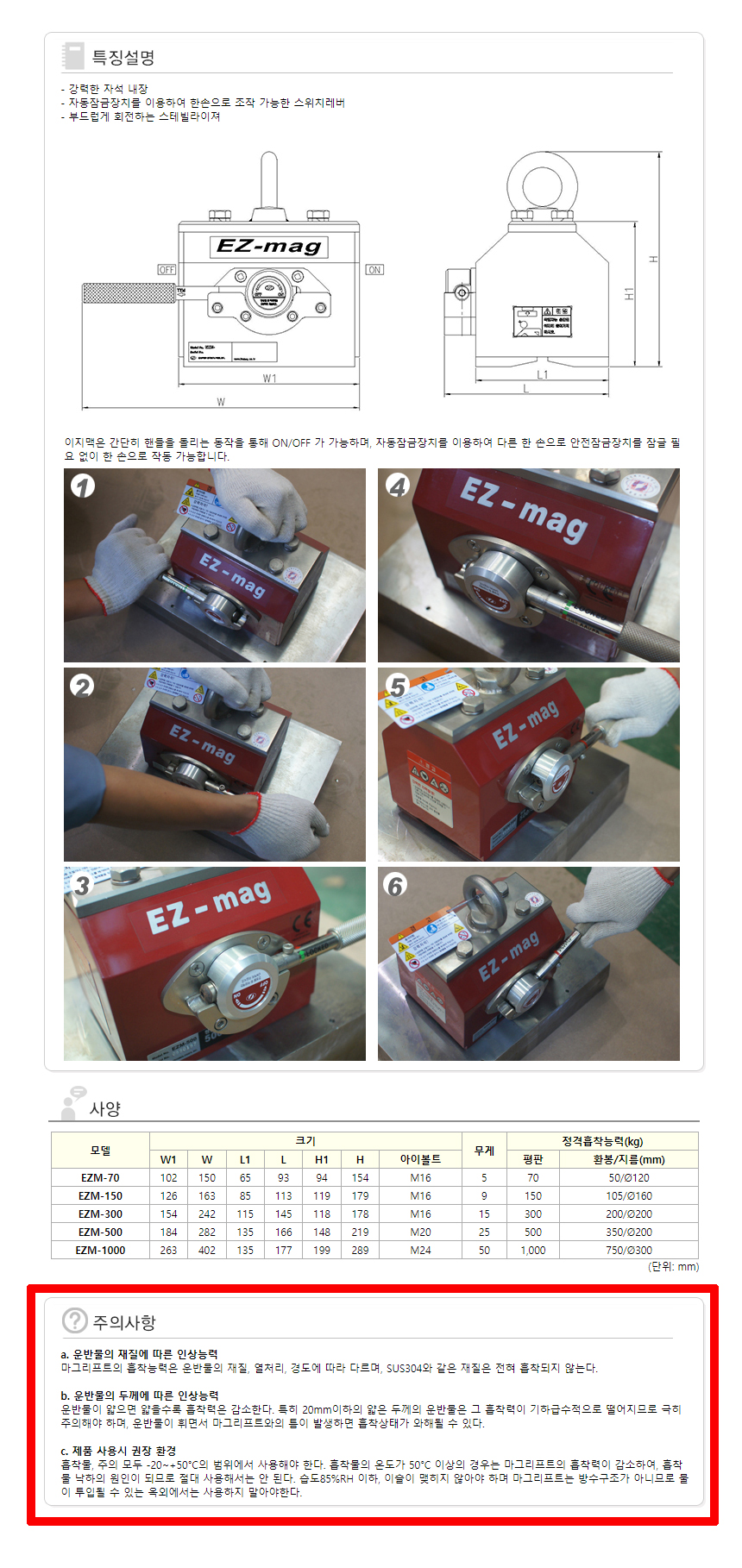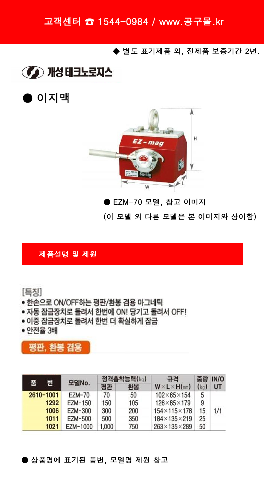 개성 이지맥(마그리프트) 50Kg, EZM-1000 평판1000kg/환봉750kg 공구몰, 2610-1021