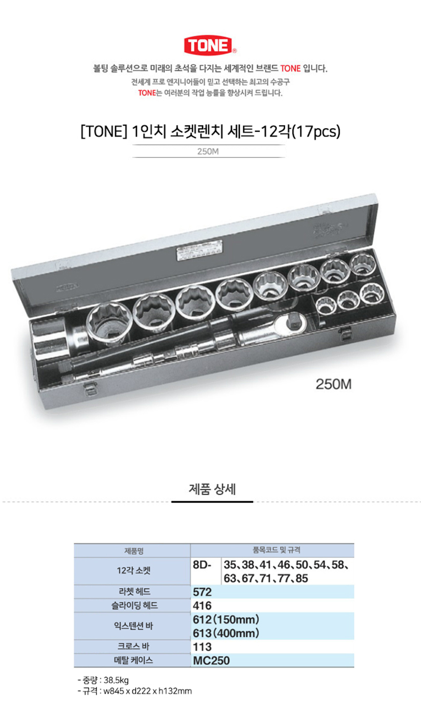 TONE 소켓렌치 (1)세트 250M(17PCS) MM - 12각 토네, 복스세트, 작업공구