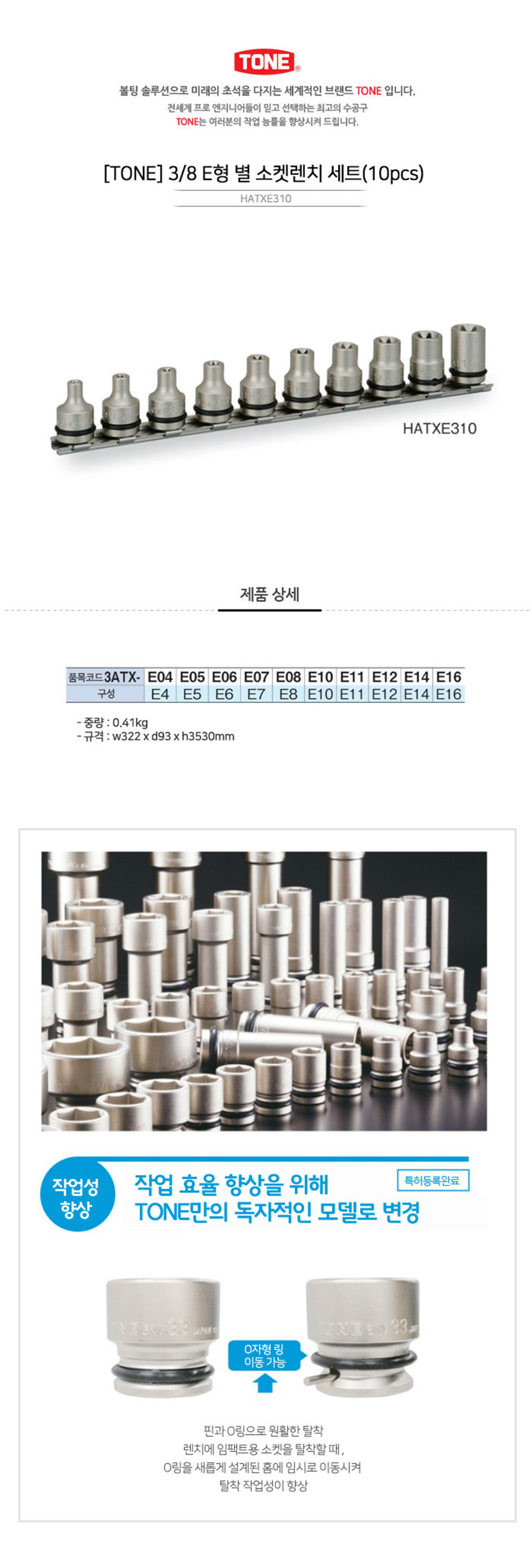 토네 E형 별 소켓렌치세트 HATXE310 3/8SQ-10PCS TONE