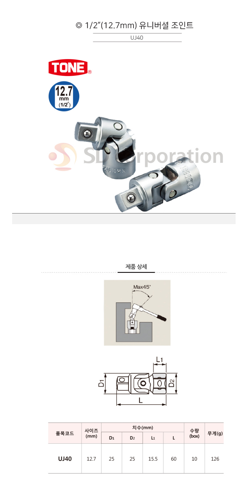 토네 유니버셜조인트(신형) (1/2) UJ40 TONE,조인트