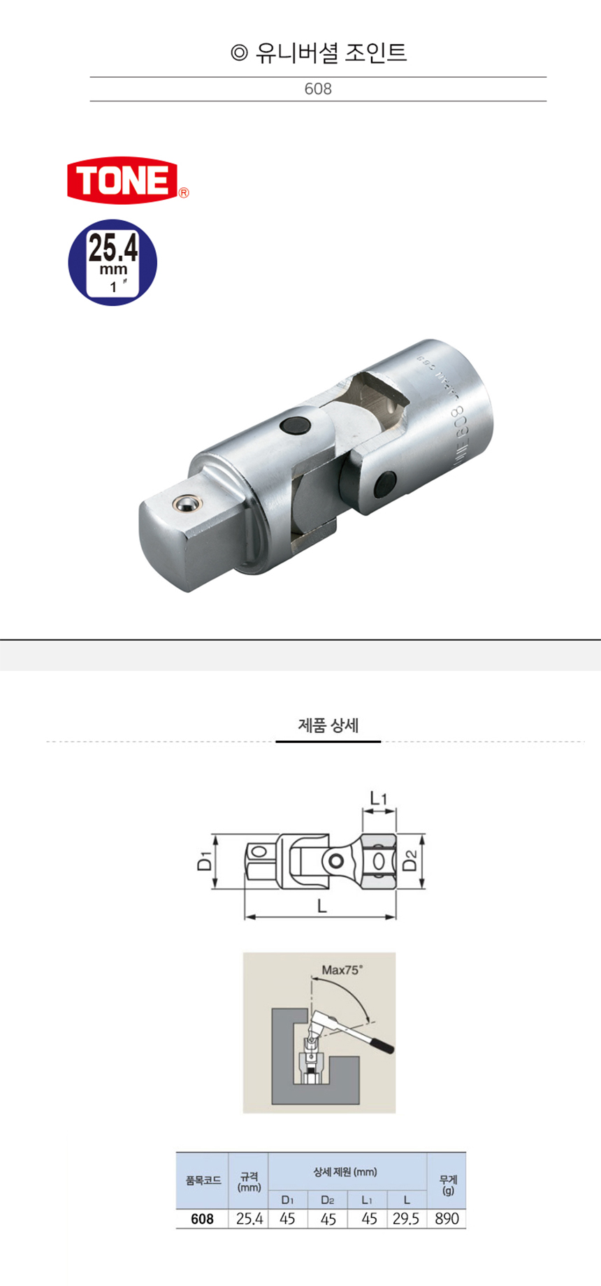 토네 유니버셜조인트 25.4(1) 608 TONE,조인트