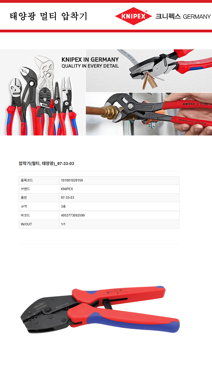 크니펙스 압착기 97-52-30, 33, 33SB, 34, 34SB, 35, 35SB, 36, 36SB, 37, 38, 38SB, 50 레버식 Knipex 독일공구, 공구몰추천 101011370158  |