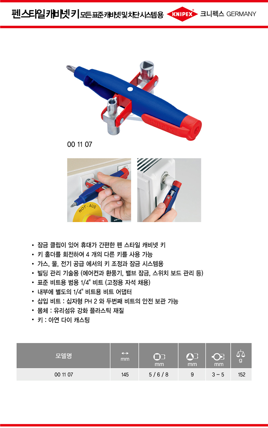 크니펙스 캐비넷키(펜타입) 00-11-07, Knipex 독일공구, 공구몰추천 111101770010