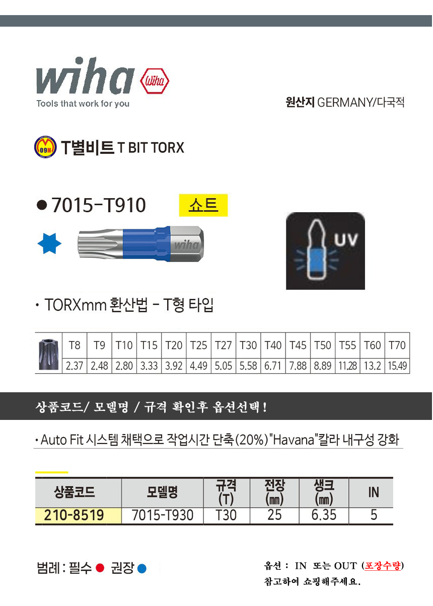 이하 T별비트 7015-T930 T30x25mm WIHA, 별빗트, 공구몰 210-8519