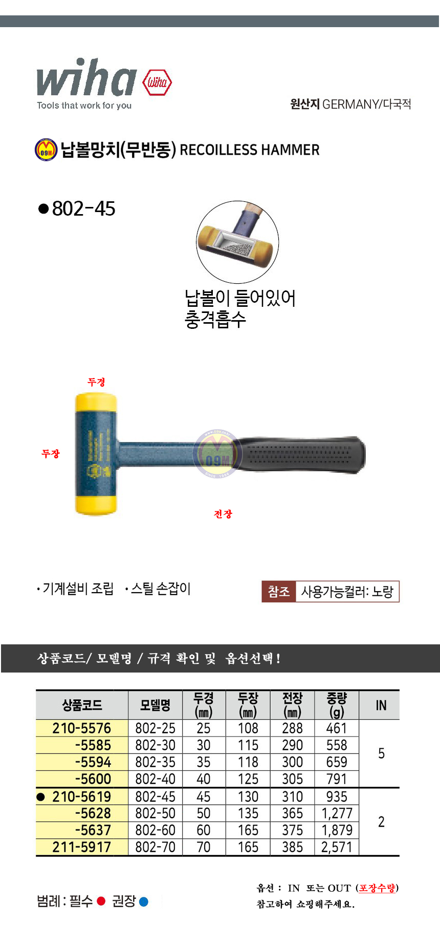 이하 납볼망치(무반동) 802-45 / 802-50 WIHA, 우레탄망치 210-5619