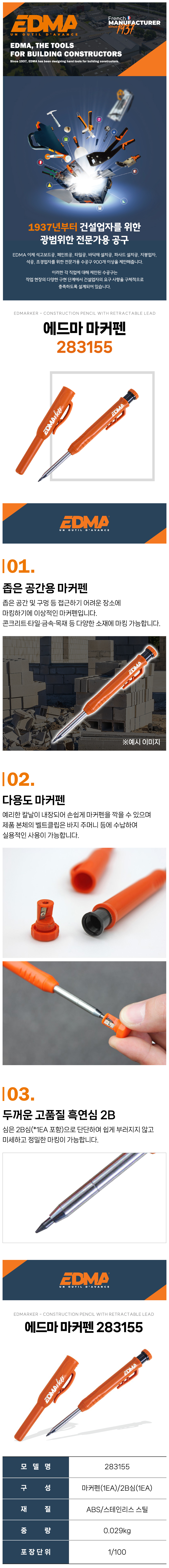 EDMA 마커펜 283155 직2.8mmx120mm에드마 공구몰