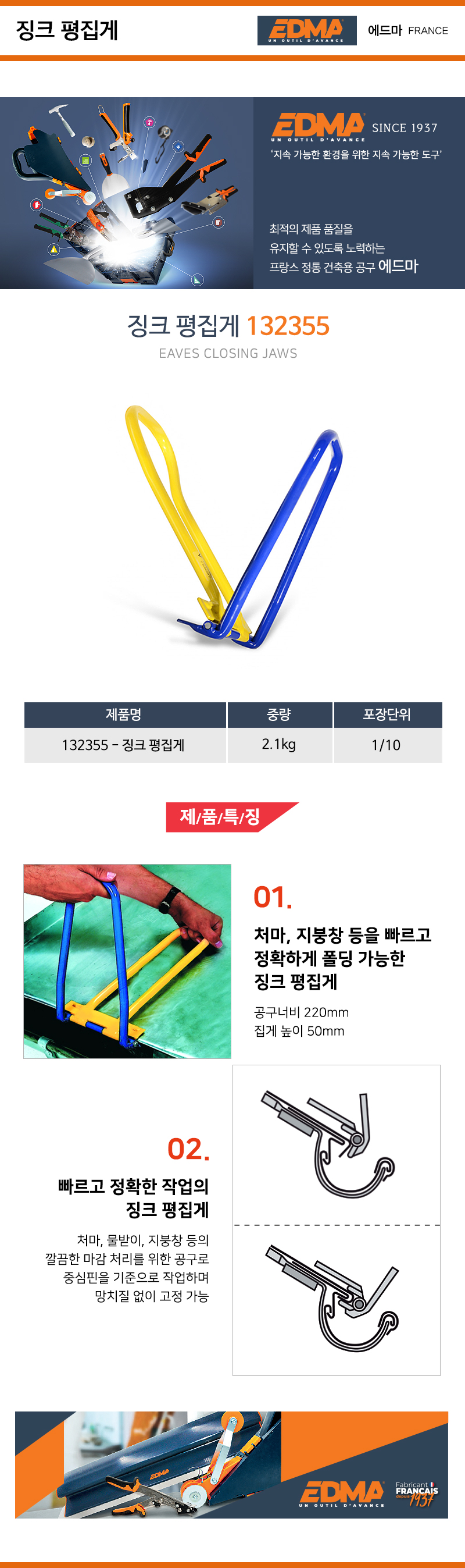 EDMA 징크평집게 132355 (폭220mm/집게높이50mm) 에드마 공구몰