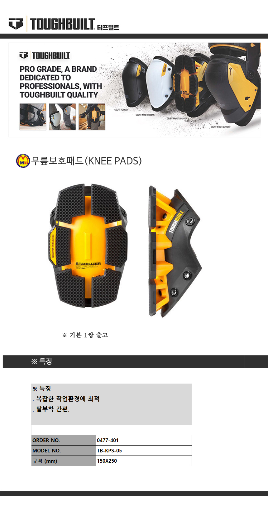 터프빌트 무릎보호대 세트 TB-KP-G203 (1쌍) (TOUGH BUILT) 고무 / 탈부착가능 0477397