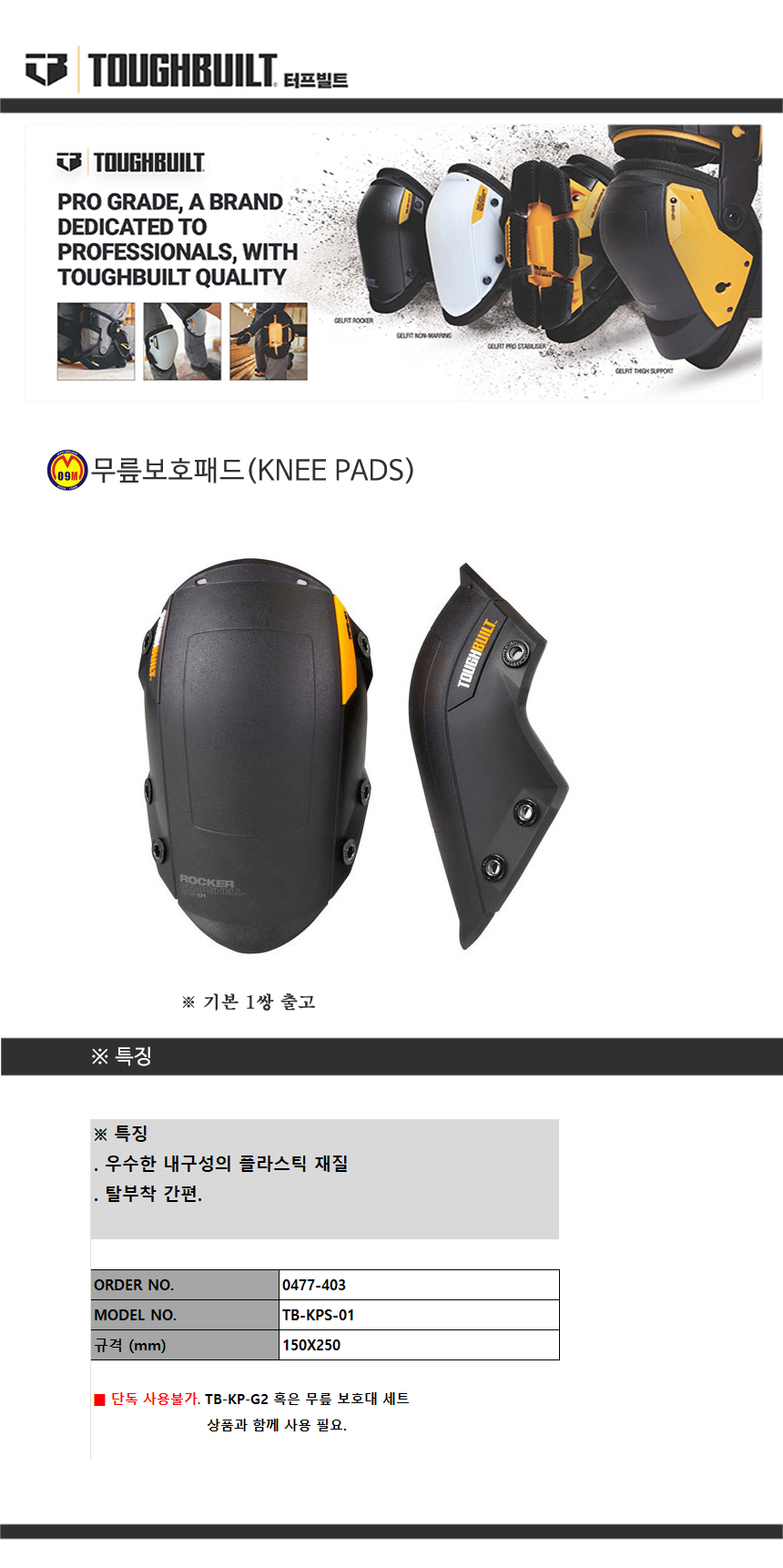 터프빌트 무릎보호대 세트 TB-KP-G203 (1쌍) (TOUGH BUILT) 고무 / 탈부착가능 0477397