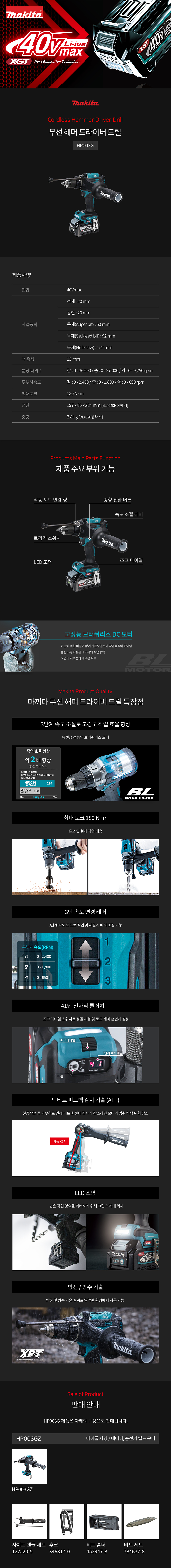 마끼다 40V 충전해머드릴 HP003G (40V-베어툴) 무선해머드라이버드릴