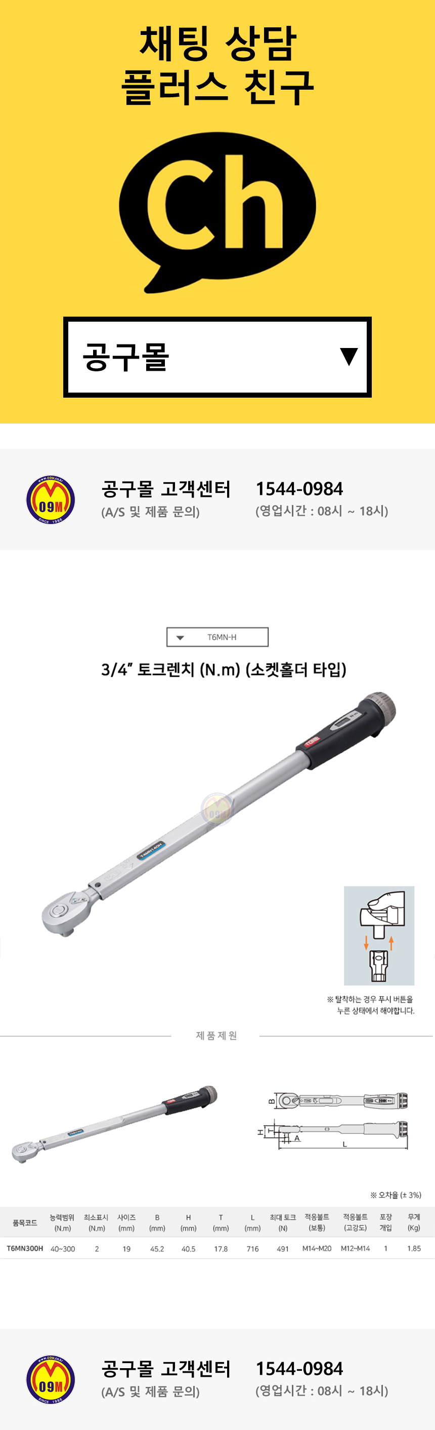 토네 토크렌치 T6MN300H (3/4 19mm) 소켓홀드