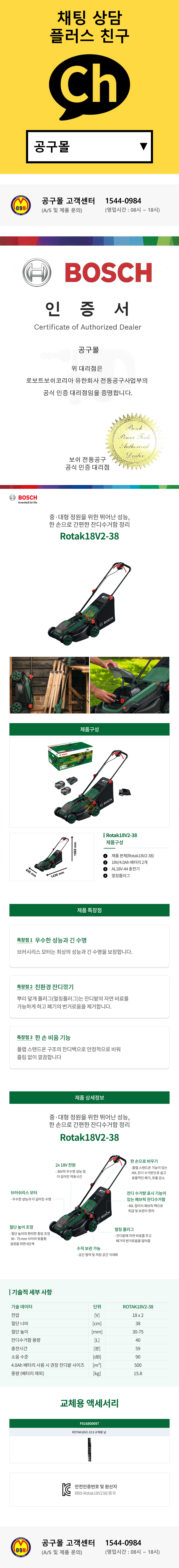 보쉬 충전잔디깍기 ROTAK18V2-38 (36V-4AH세트) 충전제초기 잔다관리