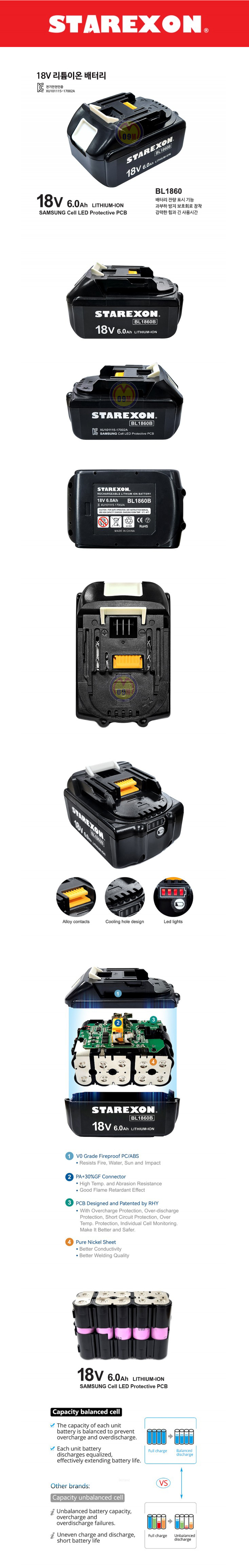 스타렉슨 리튬이온 배터리 BL1860 18V 6.0Ah STAREXON