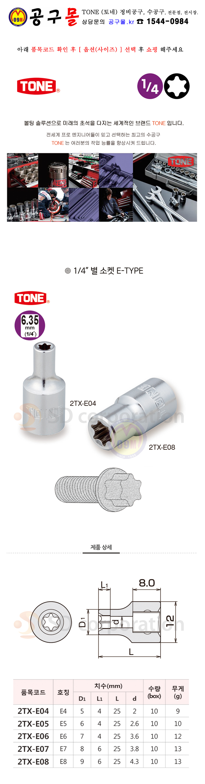 TONE 1/4 별소켓(25mm) 2TX-E04/E08 (e4-e8) 토네, 별복스알, 공구몰