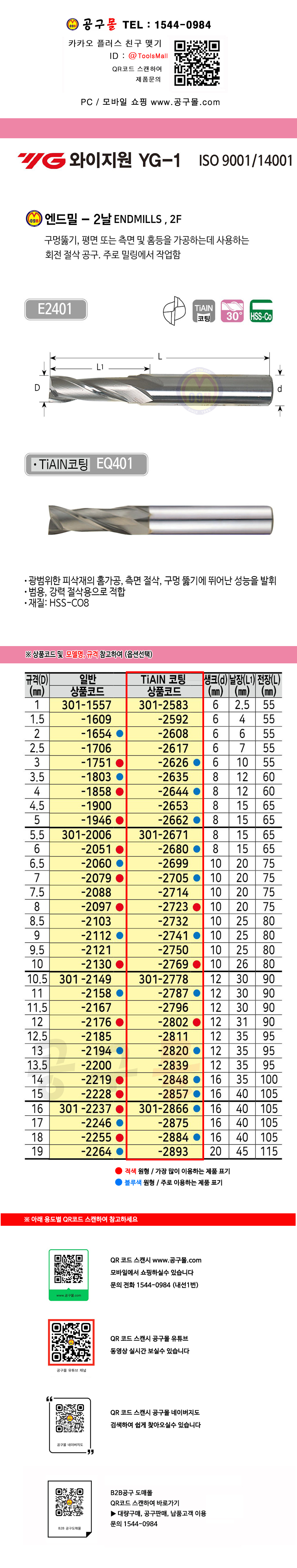 제조사ㆍ원산지 : 와이지원(YG1) / 한국
