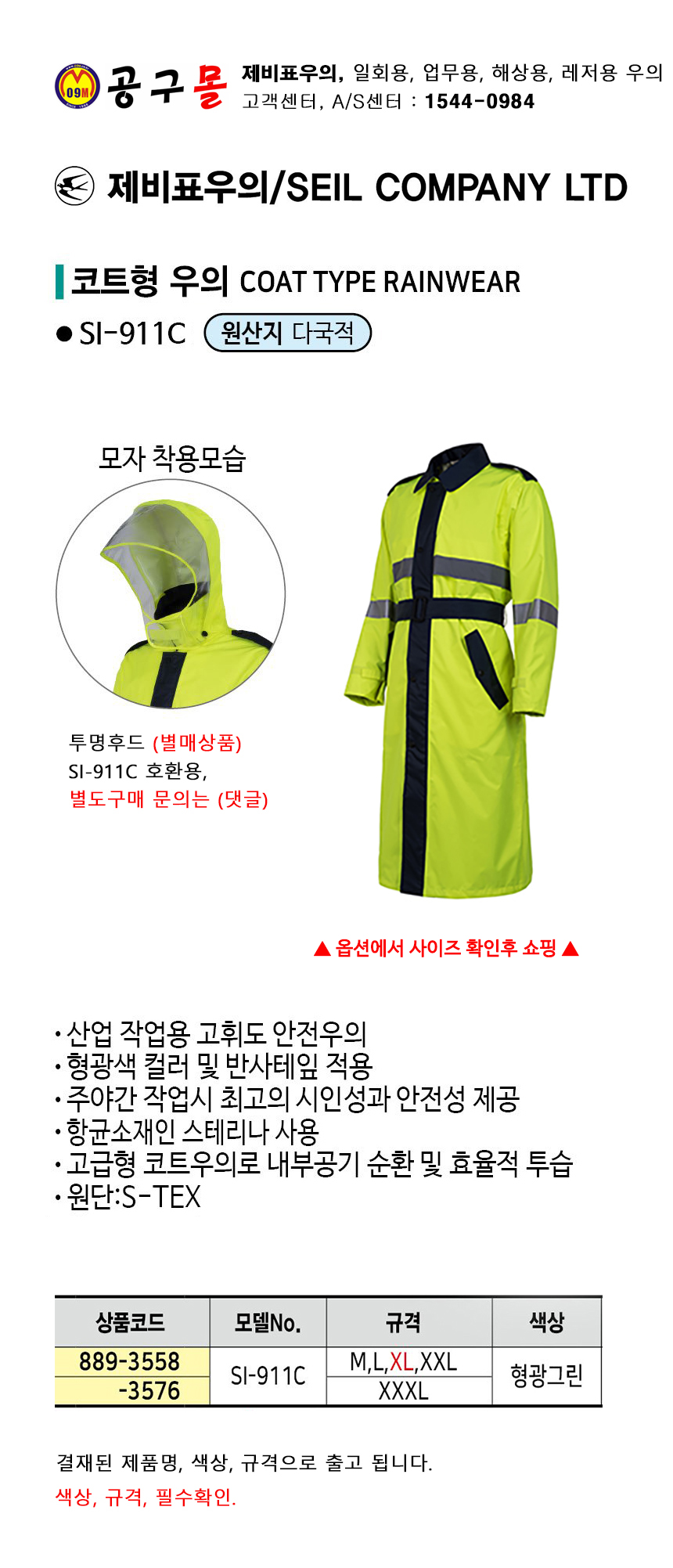 제비표우의 코트형우의 SI-911C 원피스(형광그린) 비옷, 우비, 울산 공구몰닷컴 889-3530