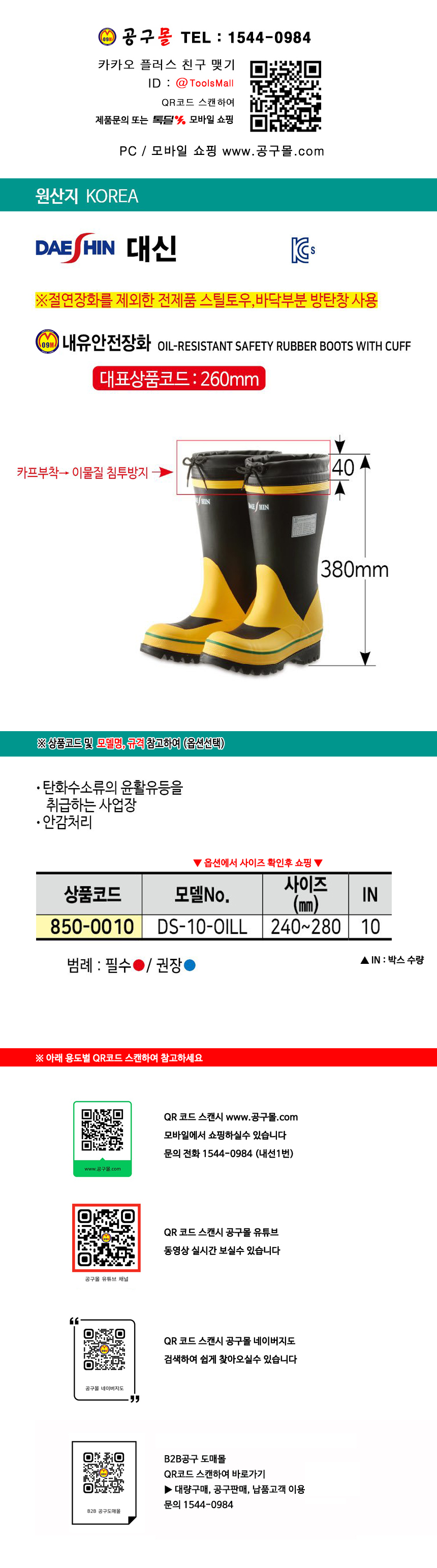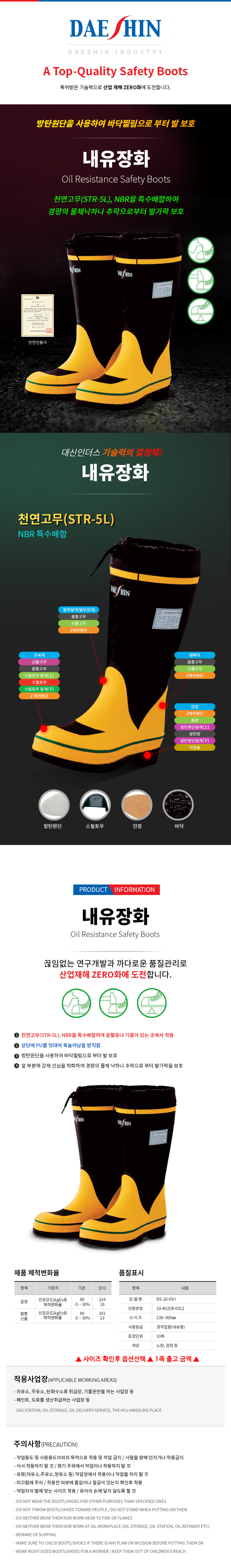 대신 내유안전장화 (DS-10-OILL) 240-280mm DAESHIN 대신인더스 오일장화 공구몰닷컴 850-4414