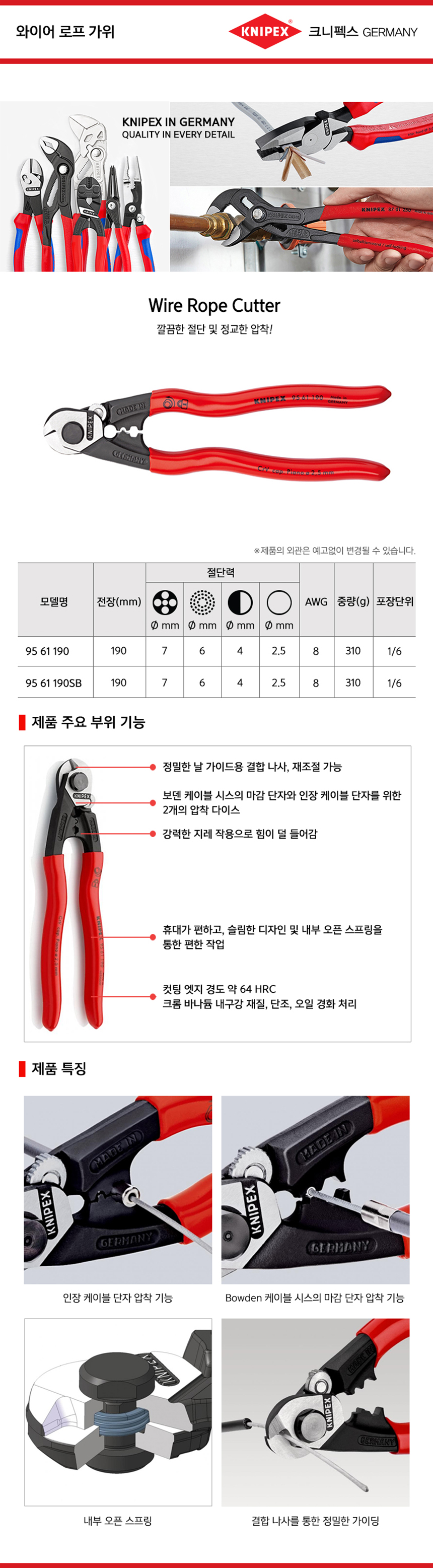 크니펙스 와이어컷터 95-61-190, 95-61-190SB KNIPEX 독일공구, 수공구 작업공구 공구몰 101001370004