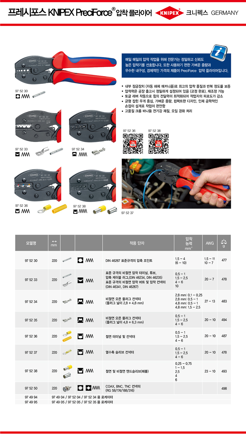 크니펙스 압착기(4면압착기) 97-52-63 Knipex 턴컨택, 디지털, 정밀, 특수플러그, 독일공구, 공구몰, 101011370167