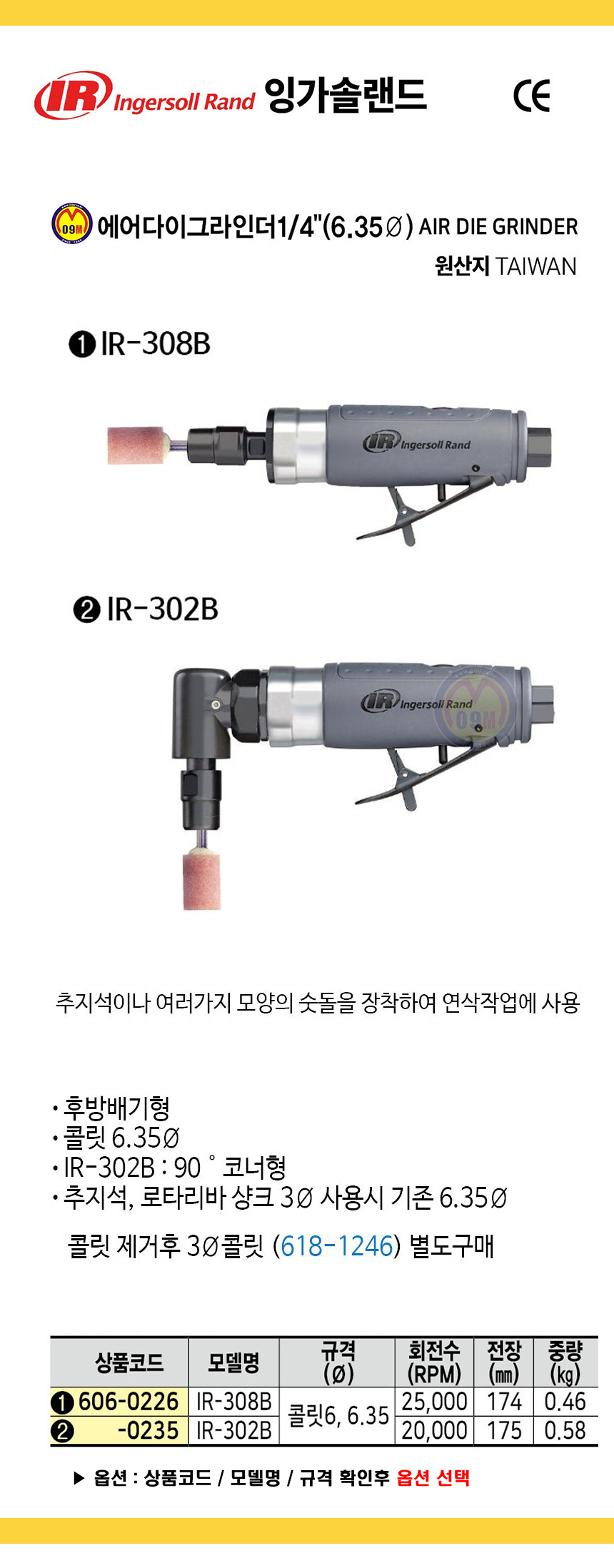 잉가솔랜드 에어다이그라인더 IR-308B, IR-302B 에어그라인더, INGERSOLL RAND 공구몰 추천 C606-0226