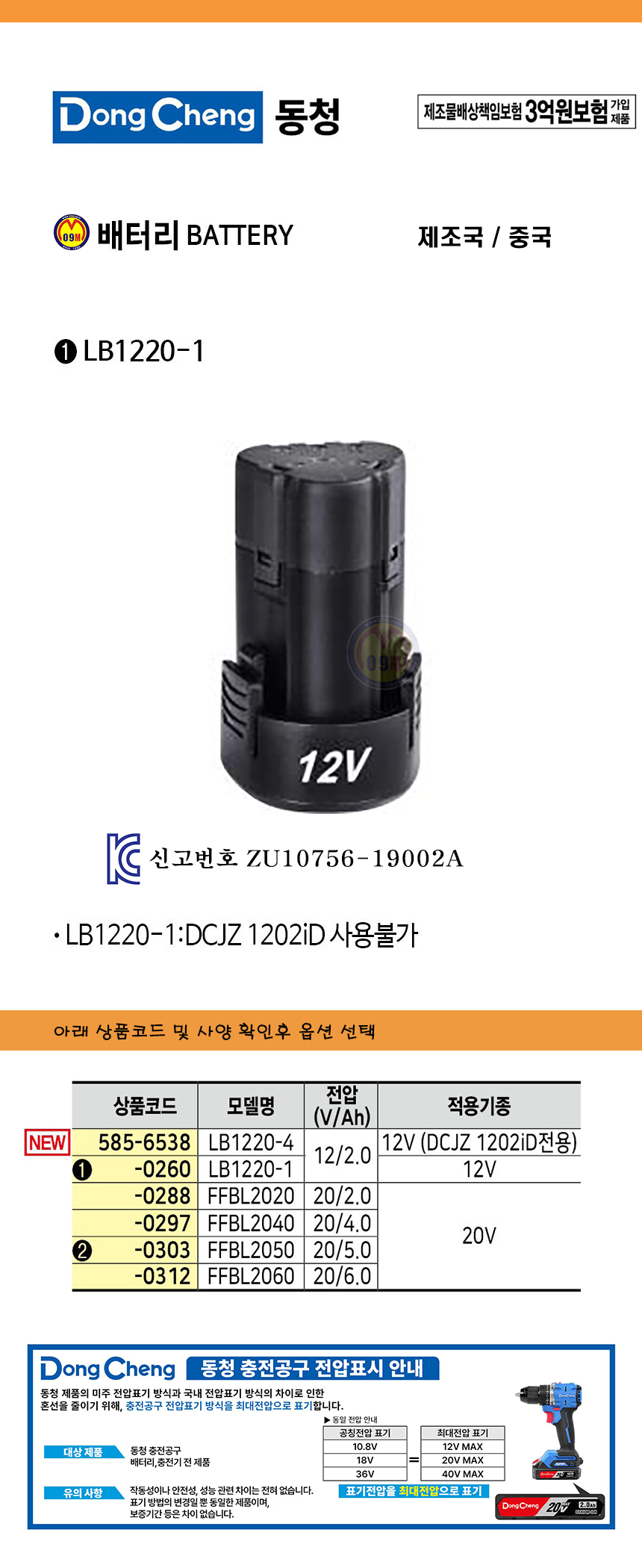 동청 배터리 LB1220-4, LB1220-1 (12V,2.0Ah) DongCheng 공구몰 585-6538