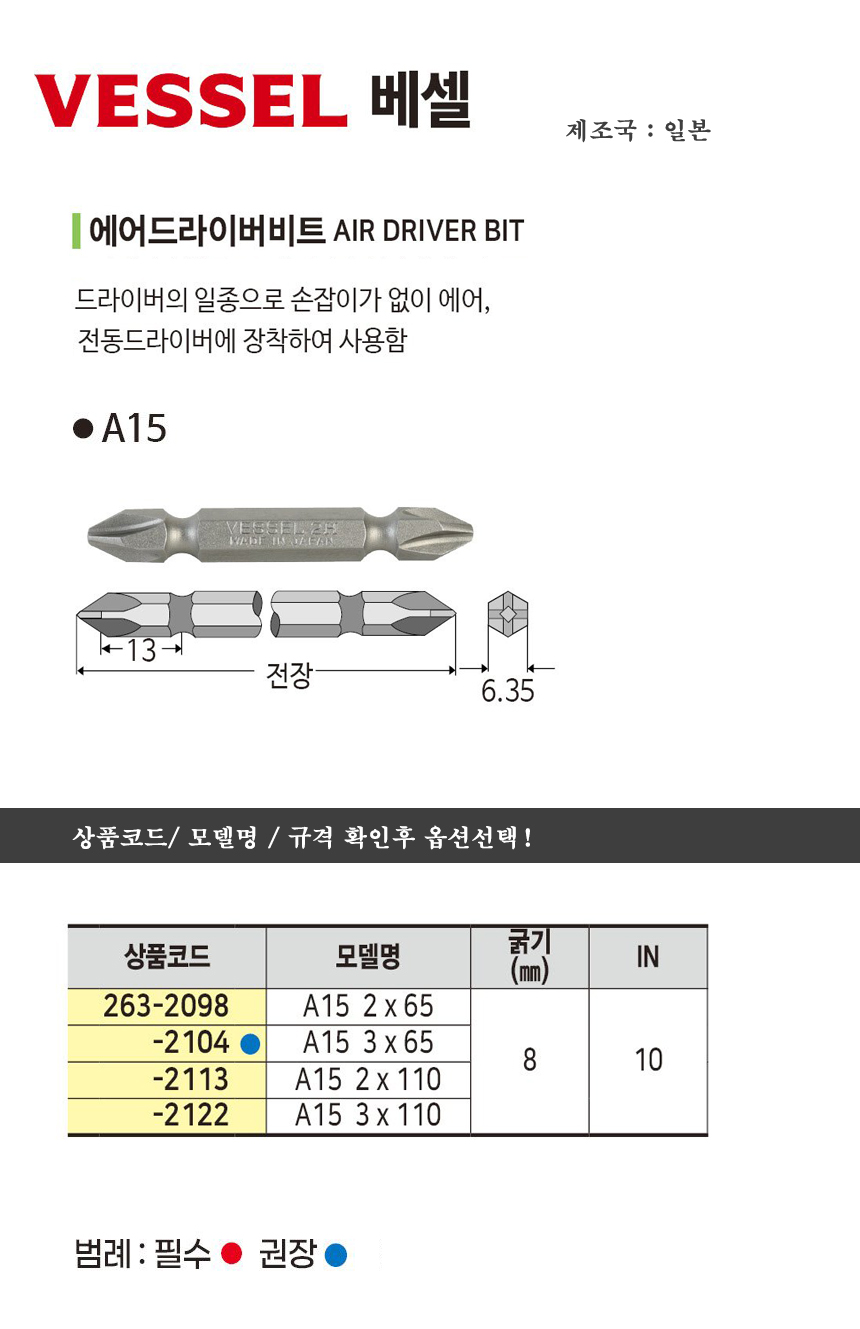 베셀 에어드라이버빗트 A15x2x65/ A15x3x110 VESSEL