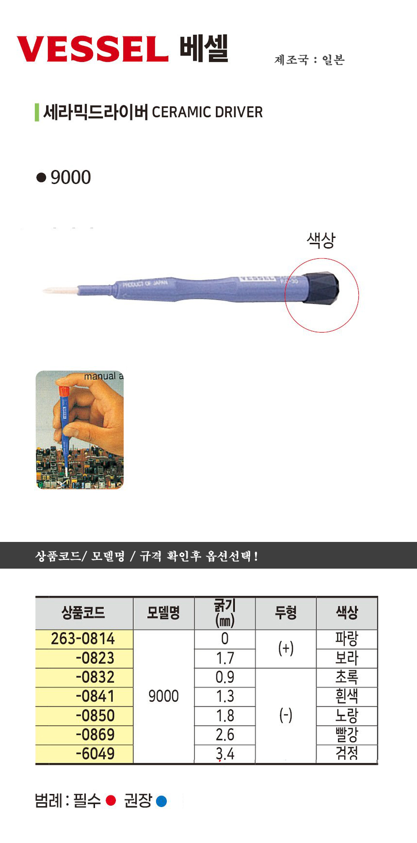 베셀 세라믹드라이버 9000(십자0mm/ 일자3.4mm) VESSEL