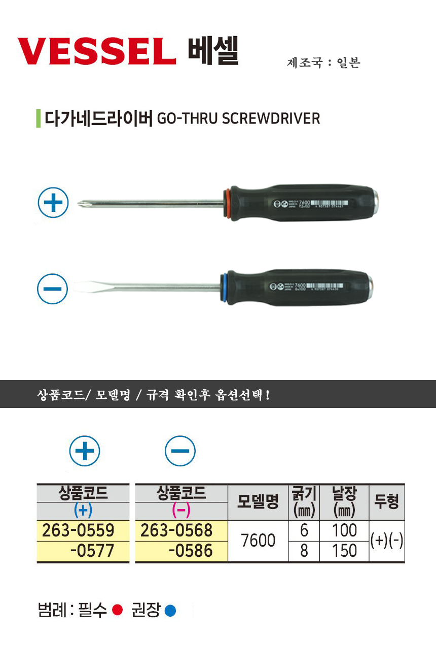 베셀 다가네드라이버 7600 십자6-100mm/ 일자8-150mm VESSEL