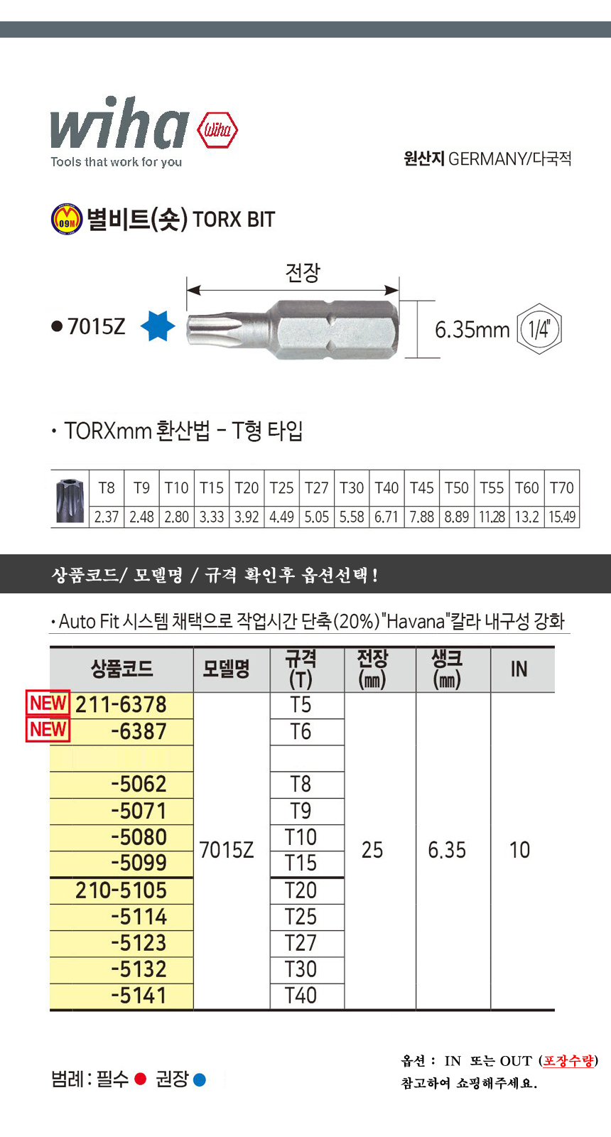 이하 별비트(숏) 7015Z (25mm) T5 - T40 WIHA, 별빗트, 공구몰 210-5071