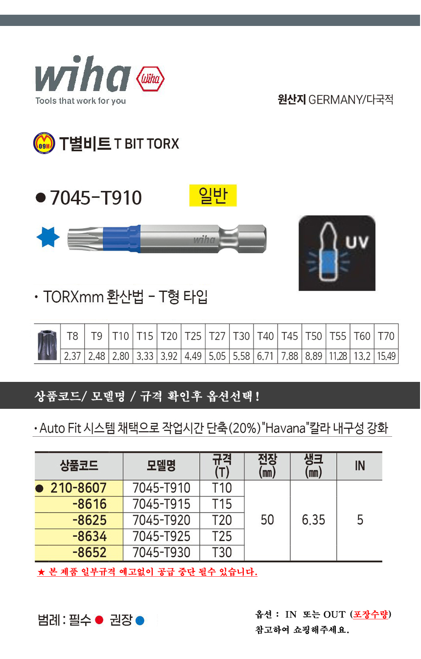 이하 T별비트7045-T915 T15 - T30(50mm) WIHA, 별빗트, 공구몰 210-8625