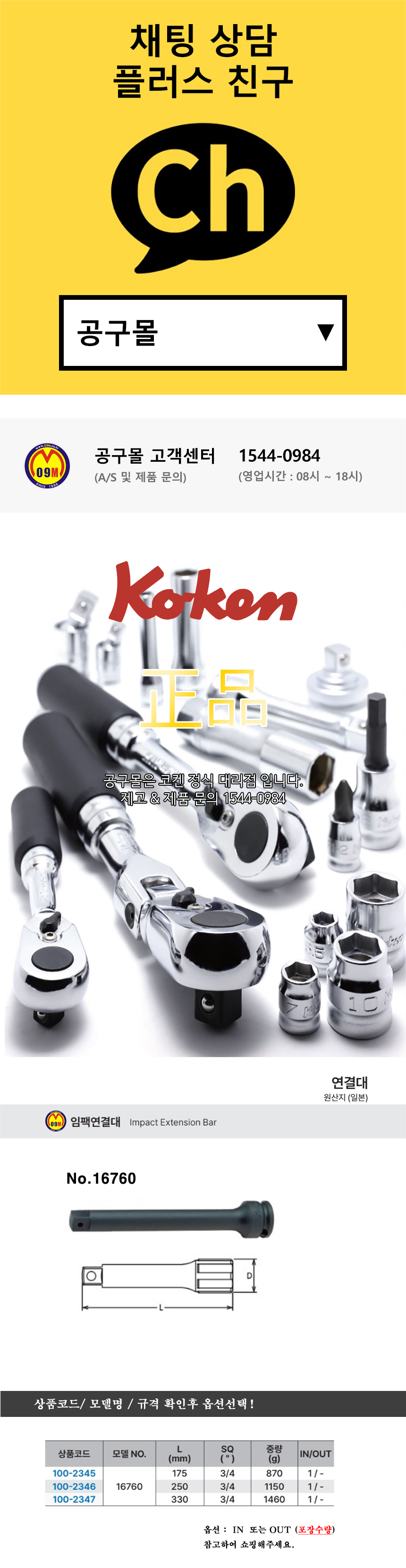 코켄 임팩연결대(147600) 1/2x50mm-250mm KOKEN impact Extension Bar 공구몰 100-1890