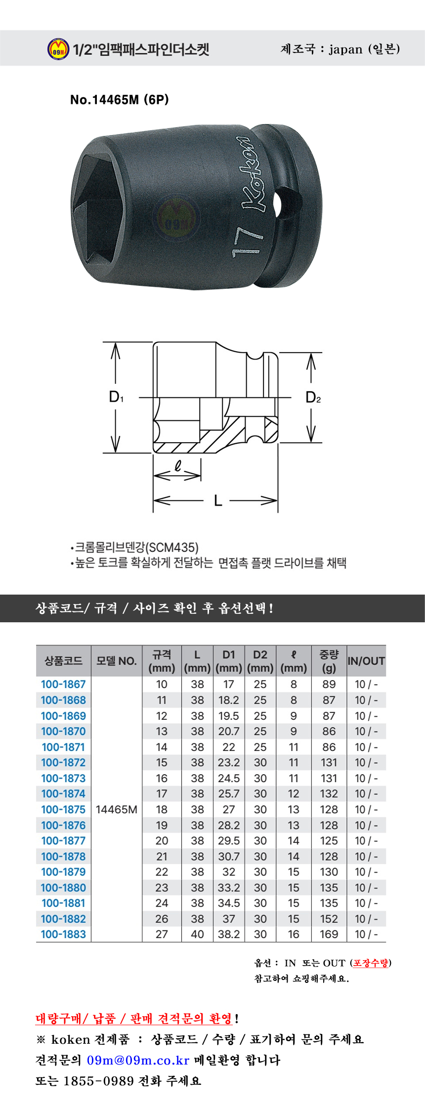 제조사ㆍ원산지 : 코켄.com (KOKEN) 공구몰,소켓세트 / 일본