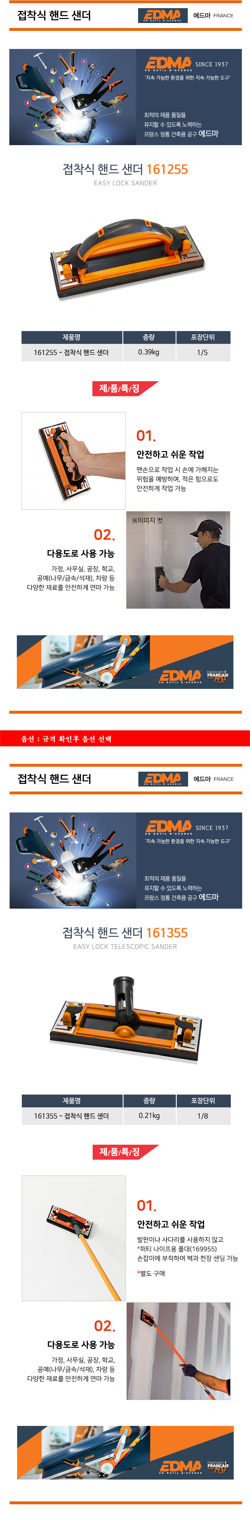 EDMA 접착식 핸드샌더 161255, 161355 (자루별매) 벽면, 천장 샌딩 에드마 공구몰