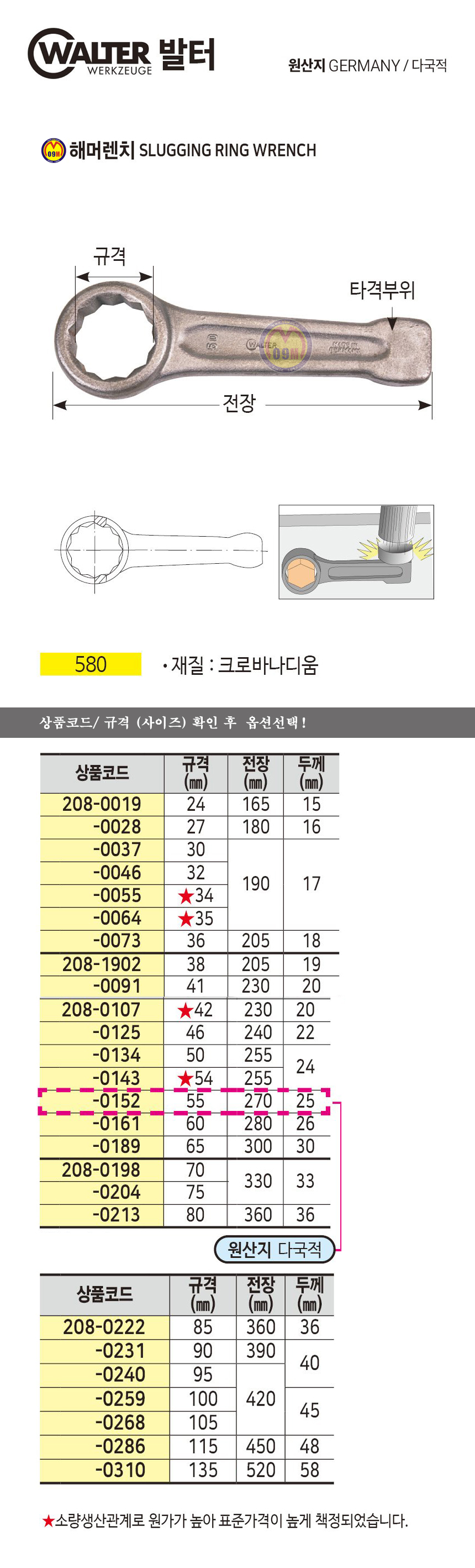 발터 해머렌치 024mm - 32mm WALTER, 함마렌치, 독일공구, 공구몰 208-0028