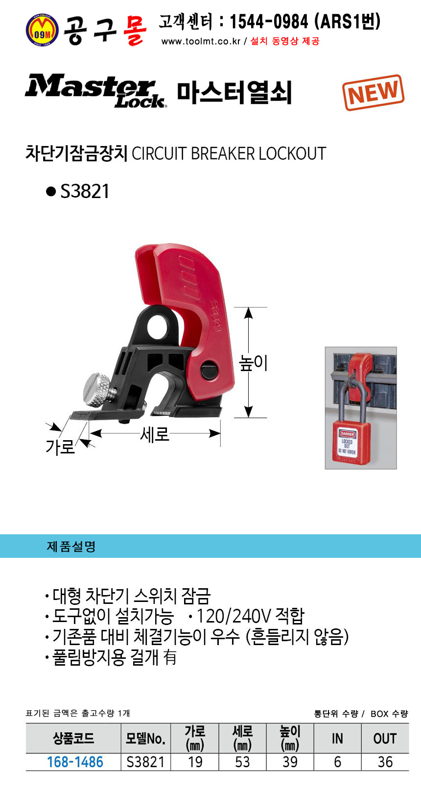차단기잠금장치 S3821 (120/220V용) 마스터열쇠,울산철물,공구몰,1681486
